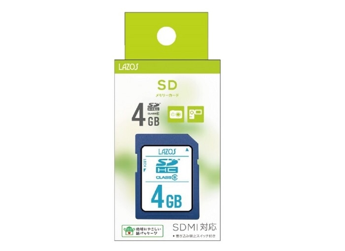 LAZOS ラソス SD 4GB Class6 L-B4SDH6【ネコポス便配送制限12点まで】