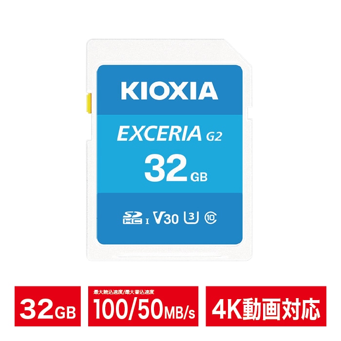 KIOXIA SDカード 32GB 4K対応 SDHC EXCERIA G2 Class10 UHS-I U3 V30 カメラ キオクシア LNEX2L032GG4【ネコポス便配送制限12点まで】