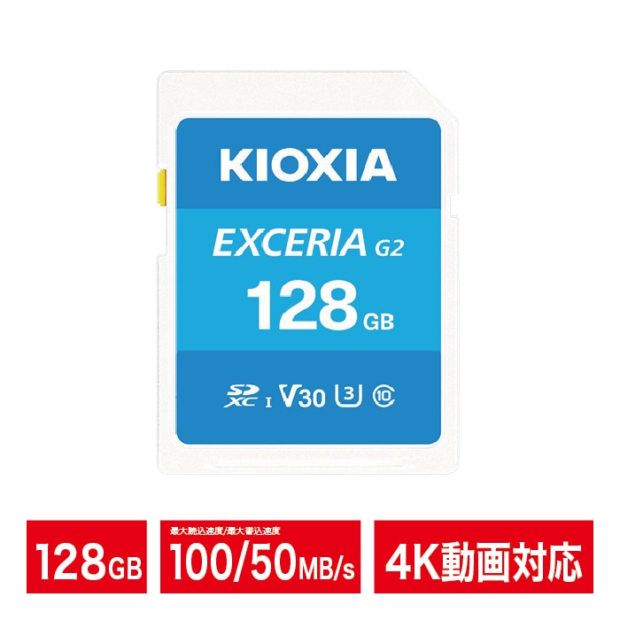 KIOXIA SDカード 128GB 4K対応 SDXC EXCERIA G2 Class10 UHS-I U3 V30 カメラ キオクシア LNEX2L128GG4【ネコポス便配送制限6点まで】
