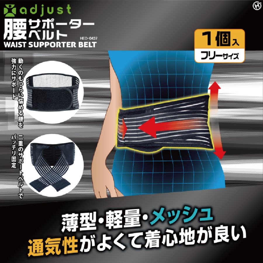 腰サポーター 腰痛ベルト 薄い 軽量 通気性抜群 メッシュ素材 腰痛 スポーツ ウォーキング デスクワーク HED-0437 ヒロコーポレーション【宅配便】