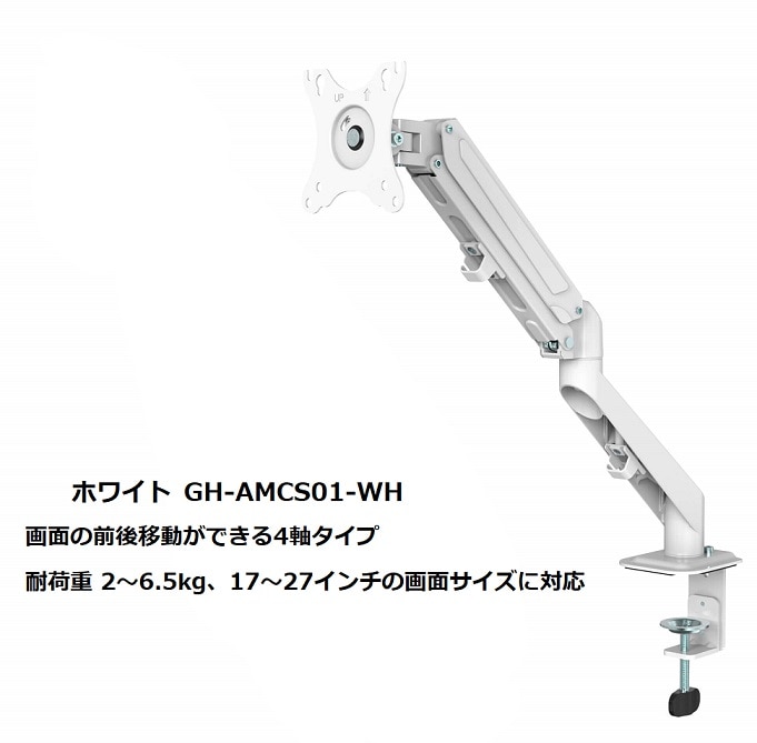 1画面 /17〜27インチ ガススプリング クランプ式 ホワイトGH-AMCS01AC-WH【送料無料(沖縄・一部離島部を除く)】