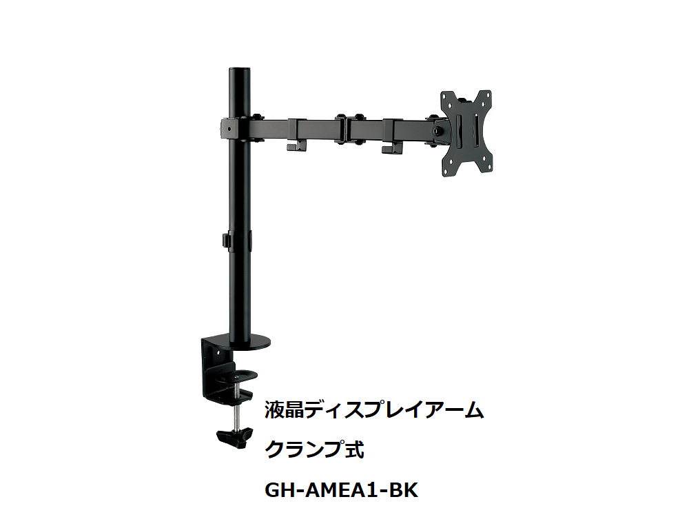 液晶ディスプレイアーム クランプ式 1画面 ブラックGH-AMEL1-BK【宅配便発送・1梱包1個まで】【送料無料(沖縄・一部離島部を除く)】