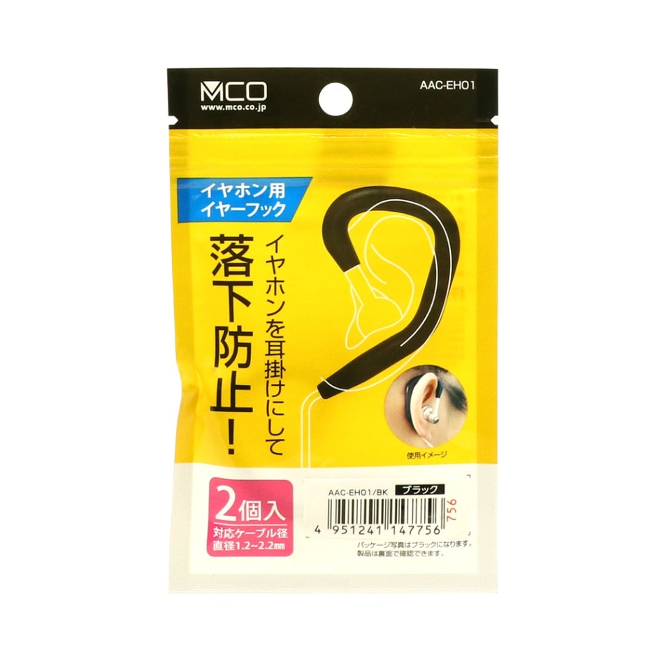 イヤホン用イヤーフック AAC-EH01/BK【ネコポス便配送制限12点まで】