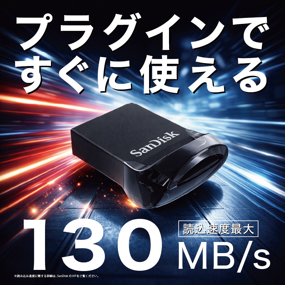SanDisk Ultra Fit USB 3.2 フラッシュドライブは、超小型設計で手軽にストレージを拡張できる便利なアイテムです。