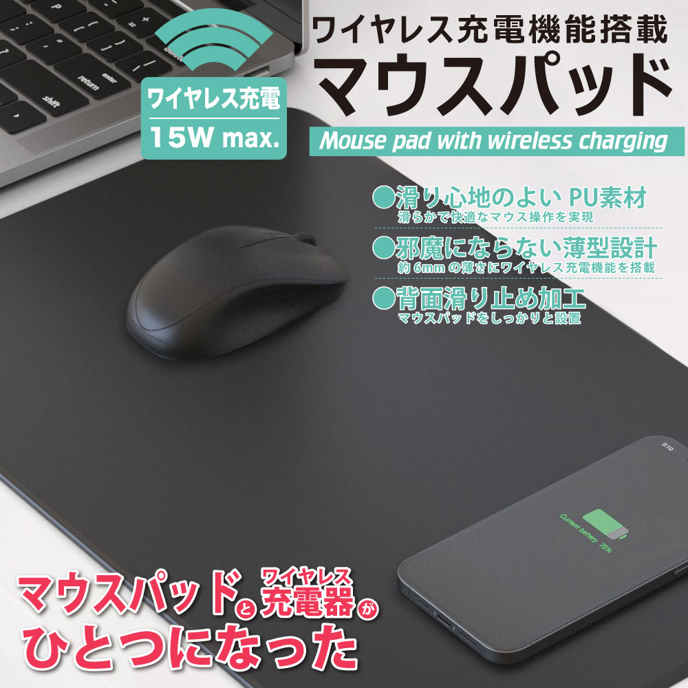 JTT ワイヤレス充電機能搭載マウスパッド ブラック JT-MC3【宅配便発送・1梱包20個まで】