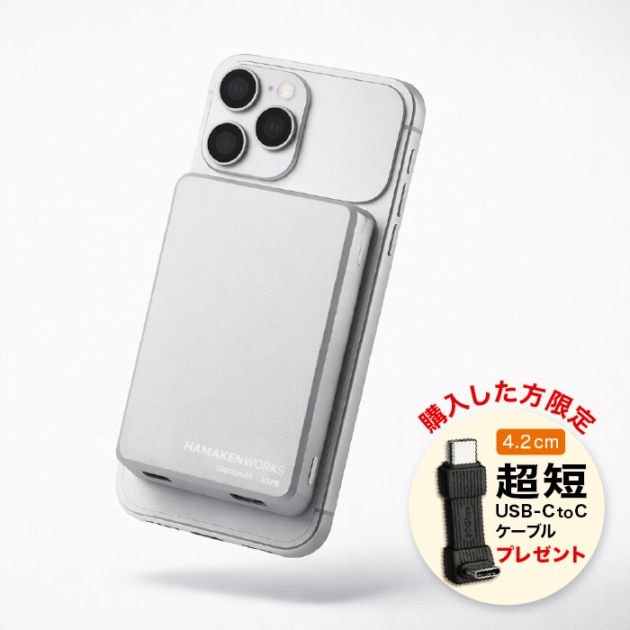 ハマケンワークス JOVY SSPB Magsafe 準固体電池モバイルバッテリー10000mAh HW-SSPB100M1WHN ホワイト HAMAKEN WORKS【送料無料】