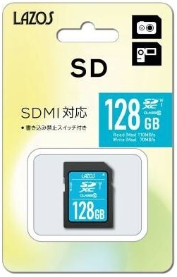 LAZOS ラソス SDXC 128GB UHS-I U3 CLASS10 L-B128SDX10-U3 【ネコポス便配送制限12点まで】