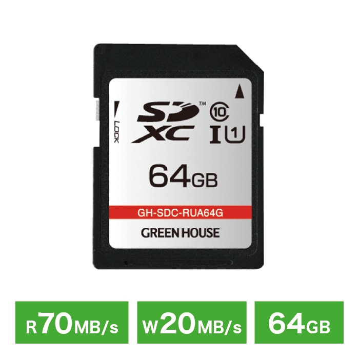 SDXCカード 64GB UHS-I ホワイト RoHS対応 データ復旧サービス付 GREEN HOUSE グリーンハウス GH-SDC-RUA64G【ネコポス便配送制限12点まで】