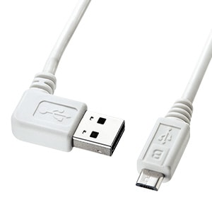 両面挿せるL型マイクロUSBケーブル(MicroB・2m・ホワイト) KU-RMCBL2W【ネコポス便配送制限3点まで】