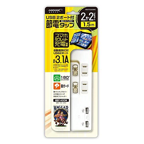 HDUTC2U2WH [USB 2ポート付 節電タップ(独立スイッチ付) 2個口+2USBポート]