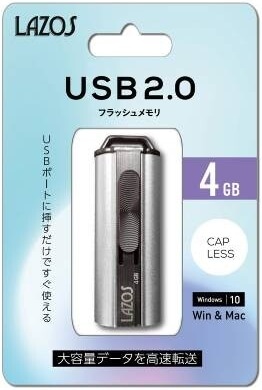 LAZOS ラソス スライド式 USB2.0 フラッシュメモリ 4GB L-US4【ネコポス便配送制限12個まで】