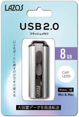 LAZOS ラソス スライド式 USB2.0 フラッシュメモリ 8GB L-US8【ネコポス便配送制限12個まで】