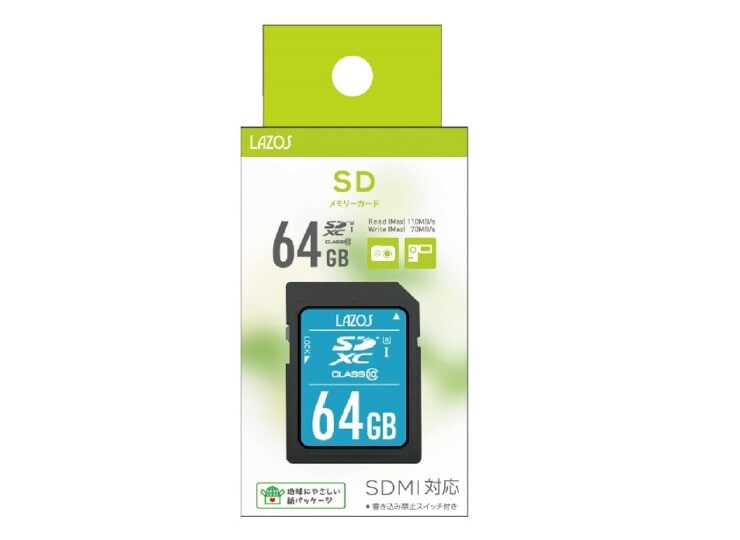LAZOS ラソス SDXC 64GB UHS-I ClassU3 Class10 L-B64SDX10-U3【ネコポス便配送制限12点まで】