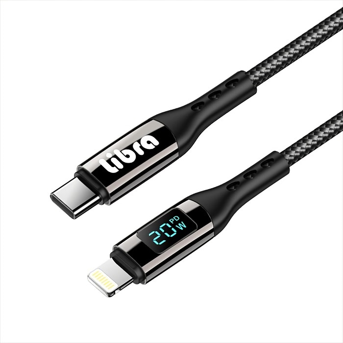9V/2.2A出力対応 出力を可視化液晶付きケーブル 8pin to TYPE-C 1m LBR-PDS20LC【ネコポス便配送制限6点まで】