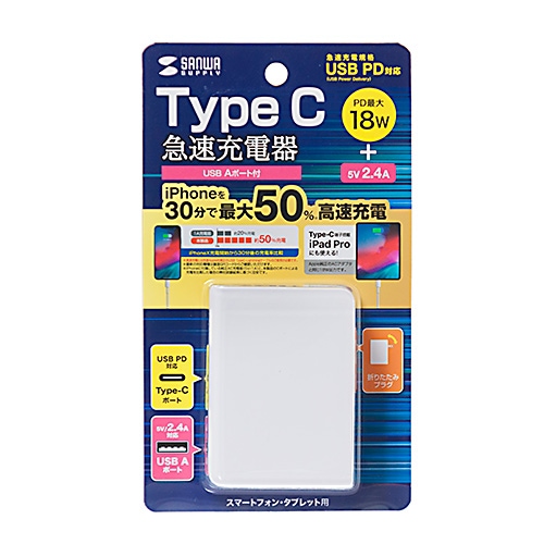 USB PD対応(45W) USB-ACアダプタ 2ポートタイプ IPA-C07/WH【宅急便配送】