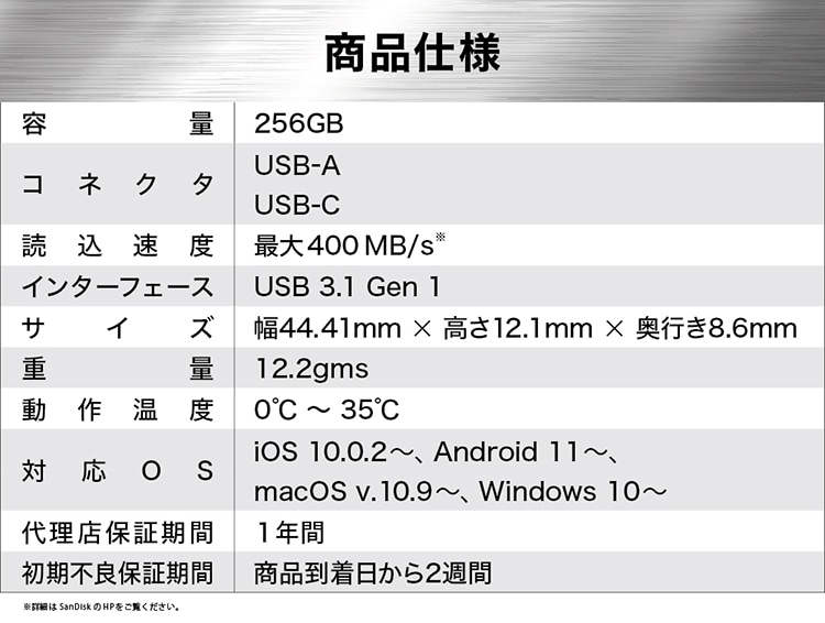 ◆読込速度:最大400MB/s