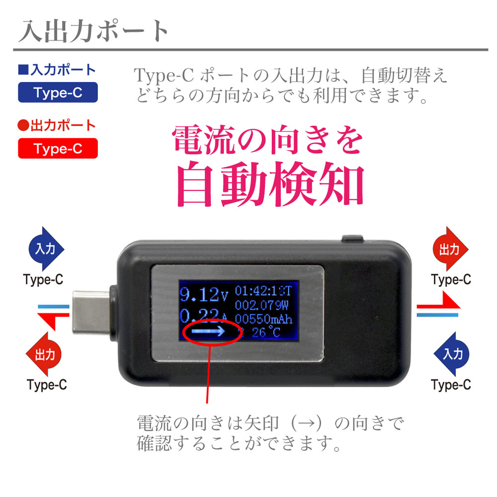 スマートフォンの充電状況を数値で確認できるので、Type-C電源やType-Cケーブルの組合せでによる充電速度の違いを確認するなどにご活用いただけます。また、USB充電器の出力やモバイルバッテリーの容量を計測するなど、様々な機器の状況を数値で確認できるようになります。