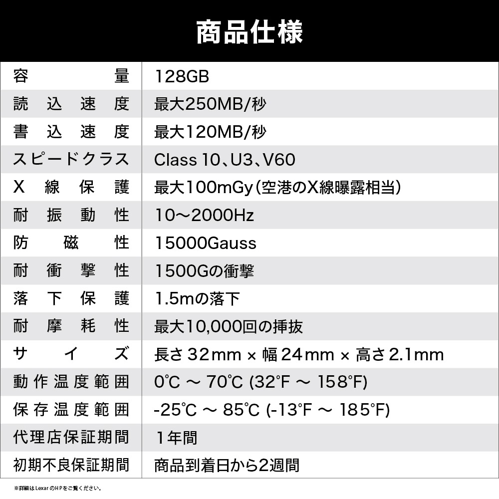 ※正常な使用での故障の場合は、修理または交換対応となります。記録データなどは保証対象外となります。お客様の責による原因の物理的破損、製品耐久性を超えた故障なども保証対象外となります。