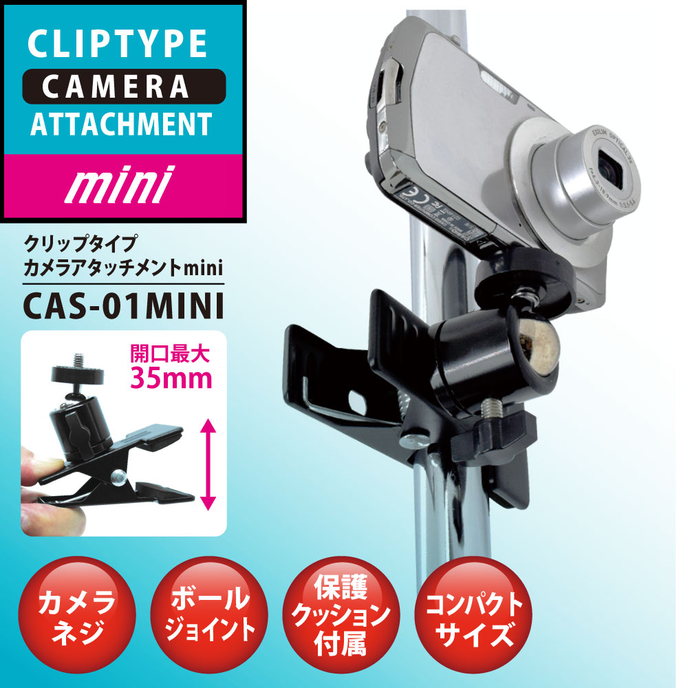 コンパクトなクリップタイプのカメラアタッチメント。 三脚ネジにカメラなどを簡単に設置できます。