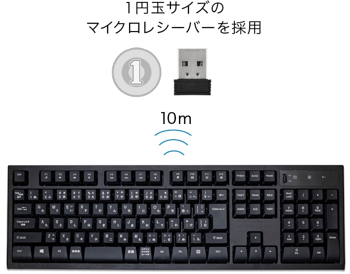 | 外形寸法 | キーボード 約W448×D140×H27 (mm) レシーバー 約W14.6×D18.4×H6 (mm) |