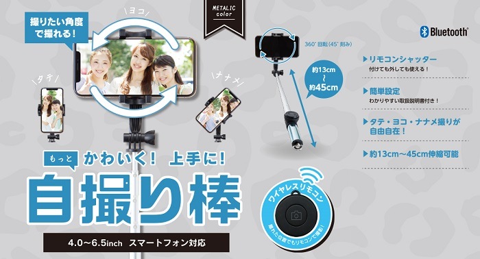 内容物 自撮り棒、リモコン、電池(テスト用)、取扱説明書(保証書付き)、ストラップ
