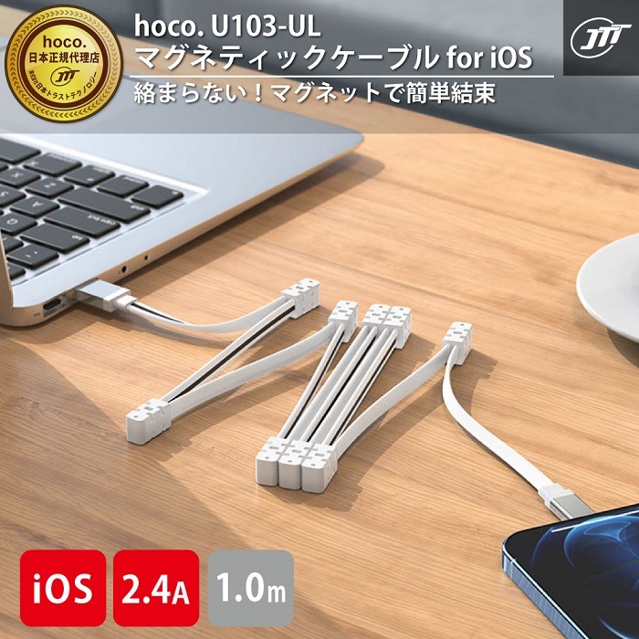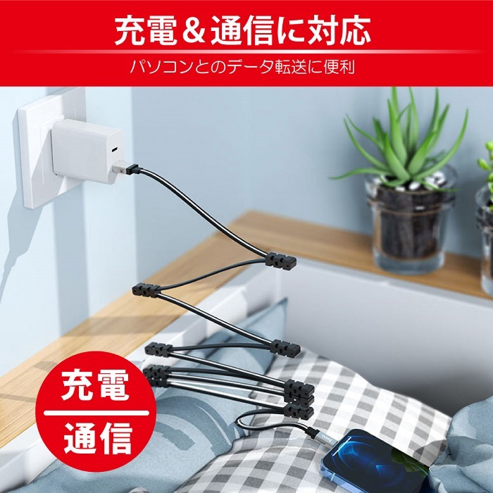 本製品は、マグネットで簡単に結束して持ち運べる蛇腹タイプの充電&通信ケーブルです。