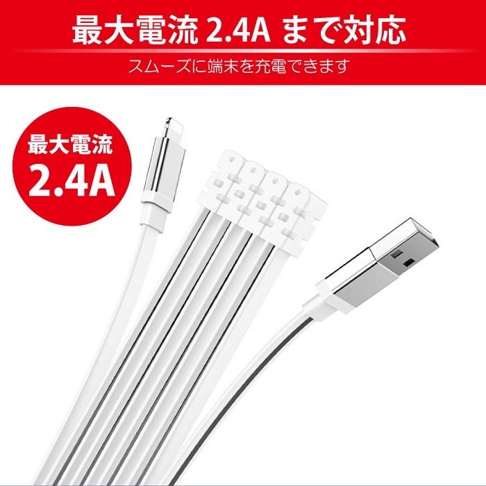 本製品は、最大2.4Aまでの電流に対応し、 iPhoneやiPadを高率よく充電いただけます。