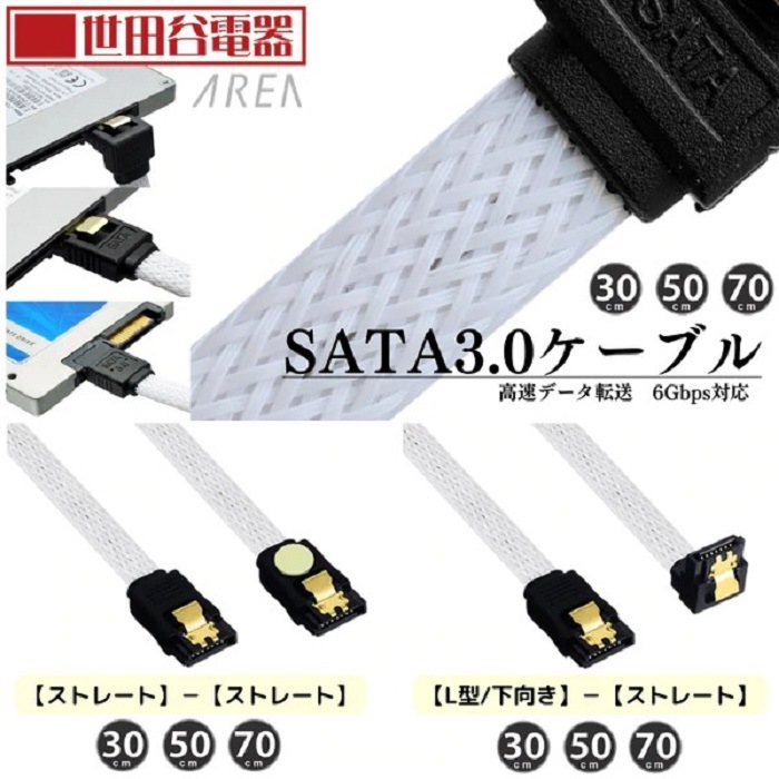 シリアルATA3規格対応しているSATAケーブルであり、マザーボードのSATAポートとSATA対応のHDD/SSDを接続するためのケーブルです。