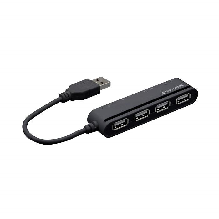カードリーダ、マウス、デジカメ、USBメモリーなどのUSB周辺機器を、4台接続できるUSB2.0ハブです。