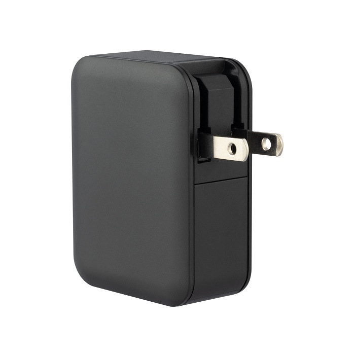 本体に収納できる可変式のACプラグなので、出張や旅行の際の持ち運びにも便利です。