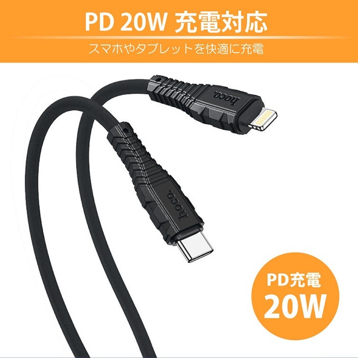 Type-C to iOSケーブルは、PD充電 20Wに対応しており、スマホやタブレットを快適に充電することができます。