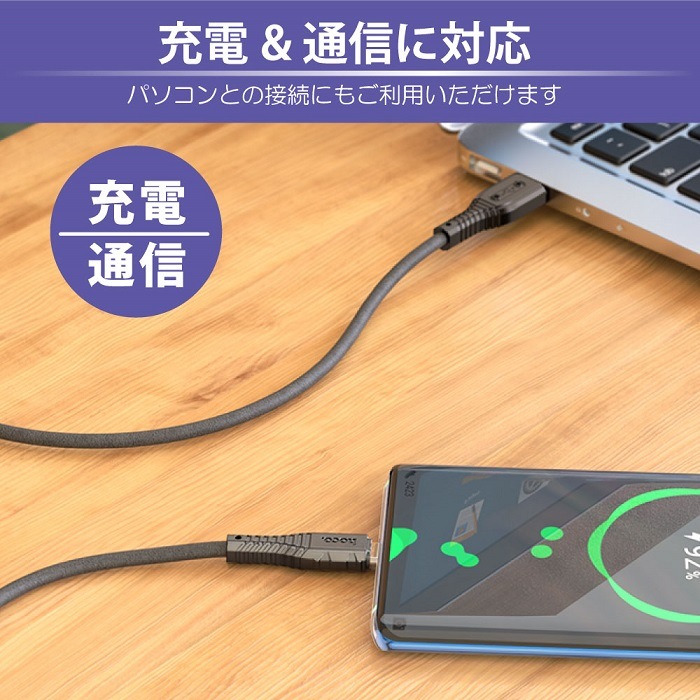 USB-A to Type-Cケーブルは、最大5.0Aまでの充電に対応しており、スマホやタブレットを快適に充電することができます。