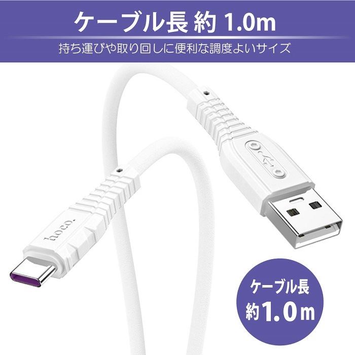 USB(A)→Type-Cケーブルは、最大5.0Aの充電に対応しており、スマホやタブレットを快適に充電することができます。