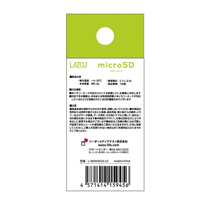 ラゾス Lazos microSDXCメモリカード64GB