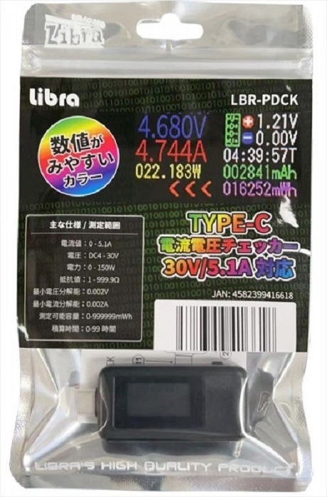 製品仕様/測定範囲 電流値:0-5.1A 電 圧:DC4-30V 電 力:0-150W 抵抗値:1-999.9Ω 最小電圧分解能:0.002V 最小電流分解能:0.002A 測定可能容量:0-999999mWh 積算時間:0-99時間