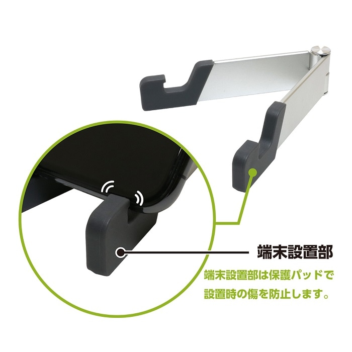スタンド本体のスマートフォンの設置部には保護パッドを搭載。