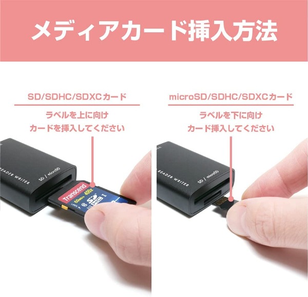 ●対応メディア:SDカード(512MB~2GB)、SDHCカード(4GB~32GB)、SDXCカード(64GB~1TB)、microSDカード(512MB~2GB)、microSDHCカード(4GB~32GB)、microSDXCカード(64GB~1TB)※著作権保護機能には対応しておりません。