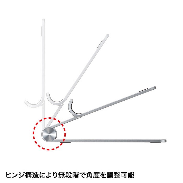 ヒンジ構造により無段階で自由に角度を調整することができるので、使用環境に合わせて最適な角度で使用できます。