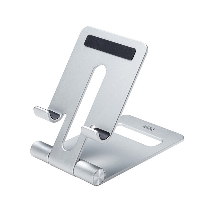 角度調整に対応したアルミ製のスマートフォン用デスクトップスタンドです。