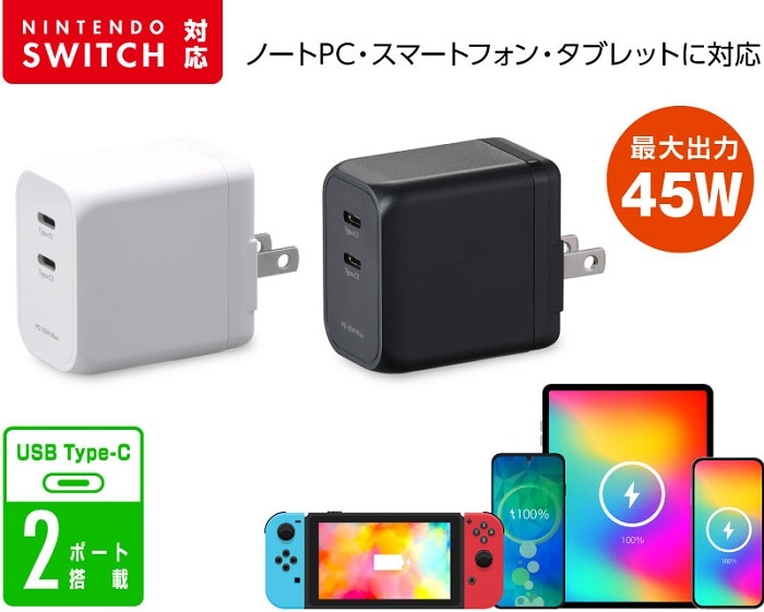 ・最大出力45Wの高速充電に対応したコンパクトなAC充電器