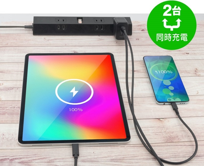 ・コンセントからiPhoneやスマートフォンを同時に2台まで充電できる