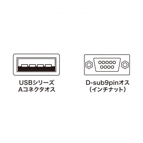 ■コネクタ形状:USB Aコネクタ オス-D-sub 9pinオス(インチナット)
