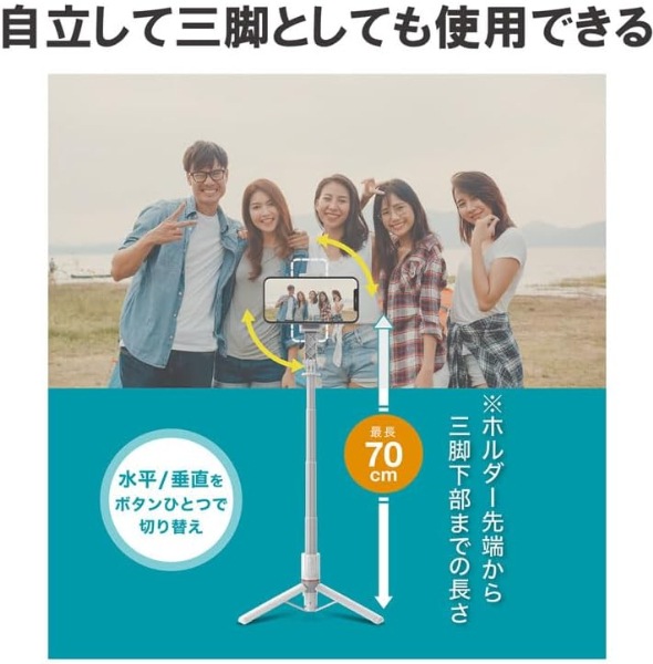 ・最長70cmの自撮り棒としても使用可能
