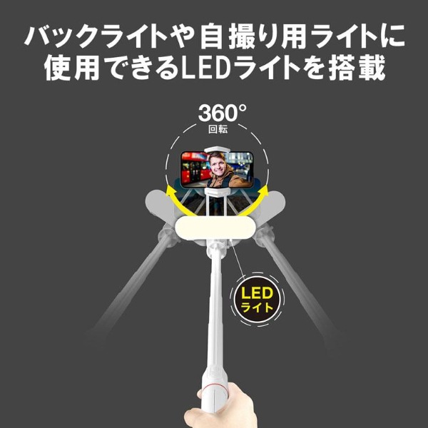 ・最長70cmの自撮り棒としても使用可能