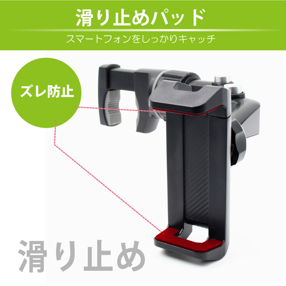 スマートフォンを挟む部分には滑り止めパッドが配置されているので、