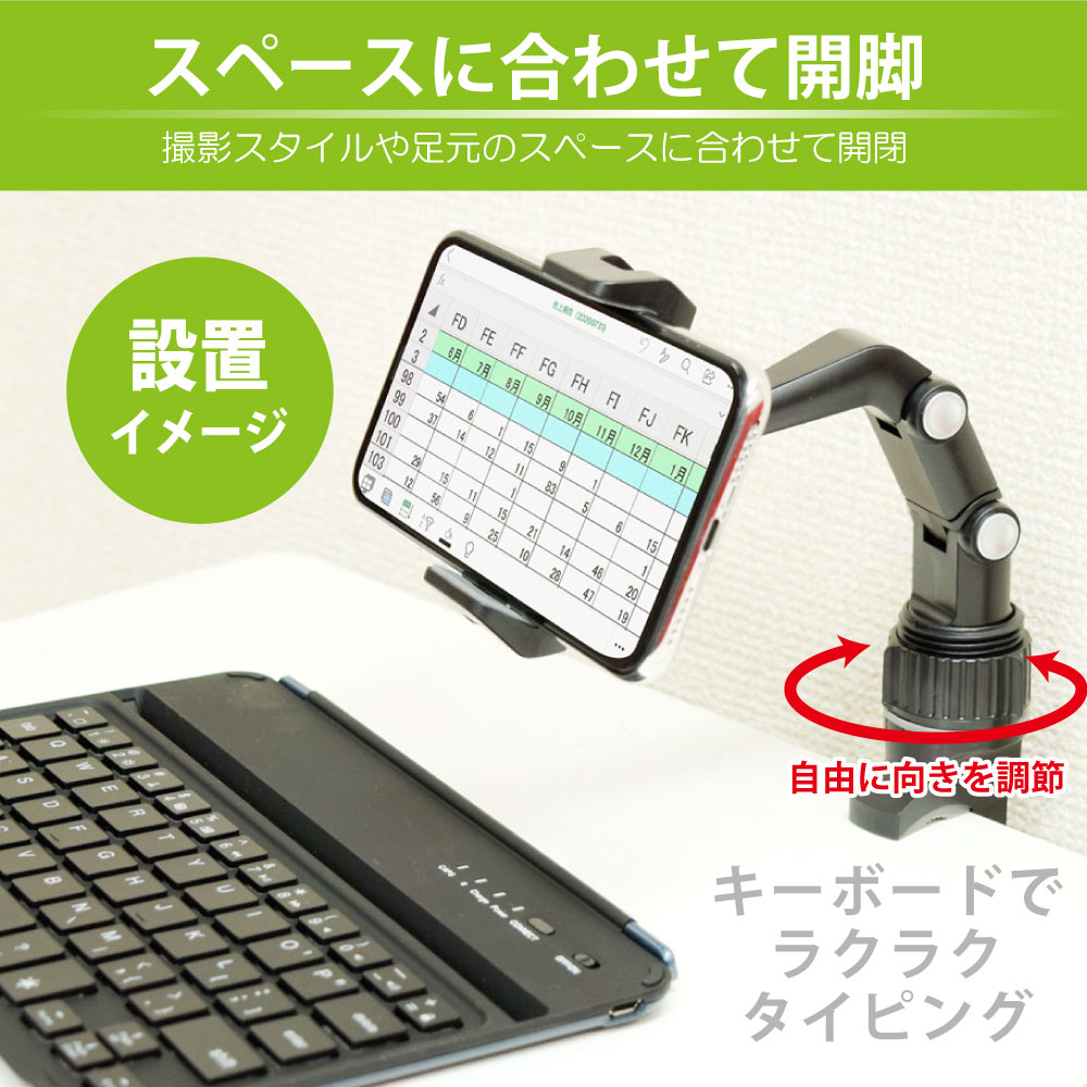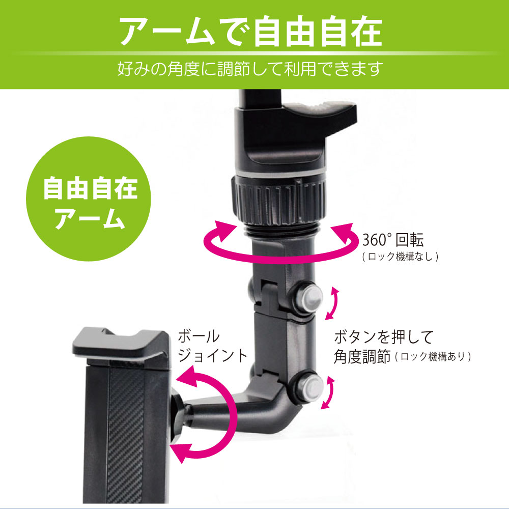 アームには4つの可動部があり、スマートフォンをお好みの向きに調整することができます。