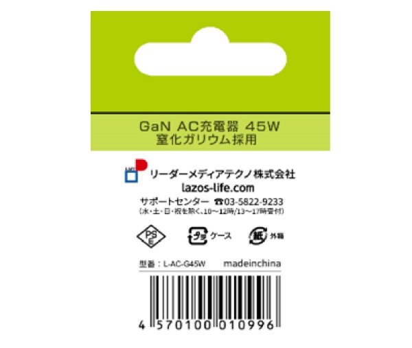 LAZOS窒化ガリウム採用 GaN AC充電器 Type-C 1口 45W ホワイト L-AC-G45W【宅配便発送・1梱包20個まで】についてつぶやく