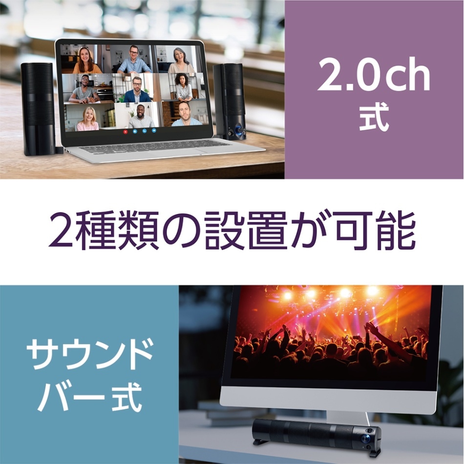 サウンドバー式・2ch式の2種類の設置が可能