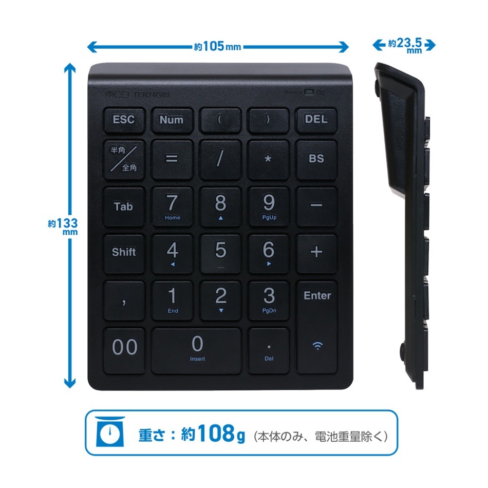 ノートPCと同じパンタグラフ方式を採用したワイヤレステンキーです。