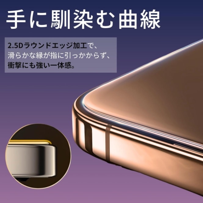 ●2.5Dラウンドエッジは、スマホの湾曲部分にピッタリとフィットし、ケース装着も問題なし